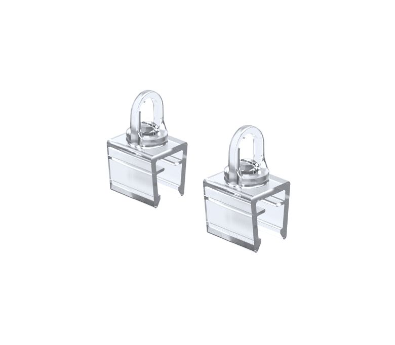 Клипса предназначена для подвешивания пластиковых рамок различных форматов на трос, цепочку и другие подвесные элементы. У нее есть вращающаяся петля, что позволяет удобно располагать рамки и предотвращает «закручивание» подвесного троса. Фиксация осуществляется с верхней стороны рамки. Для надежного подвешивания одной рамки рекомендуется использовать две такие клипсы.