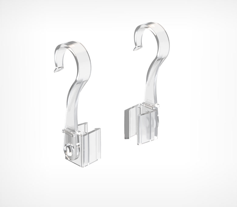 Используется для подвешивания рамок, крепится к верхней части рамки. Крючок с подвижной основой предназначен для подвешивания пластиковых рамок на трубу диаметром 20 мм. Также возможно использование для подвешивания рамки к металлическим корзинам для покупок и подвесным профилям, фиксация осуществляется с боковой стороны рамки. Для подвешивания одной рамки рекомендуется использовать два крючка разной ориентации (левый и правый). Изготовлен из прочного пластика, устойчивого к ударам.